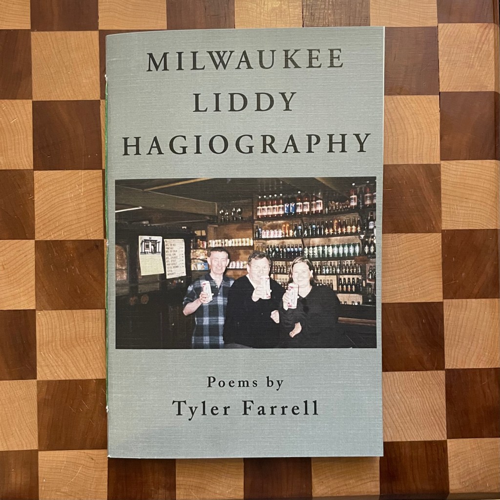 Milwaukee Liddy Hagiography places Tyler Farrell’s poems with letters from poet James Liddy, with photographs of their friendship interspersed. Farrell’s poems create a lyrical zooming out of a map, beginning locally in a Milwaukee corner bar and ever expanding through the scenes and histories of poetry. Juxtaposed with the artefact of Liddy’s correspondence, the poems turn the images to postcards crossing time and place.